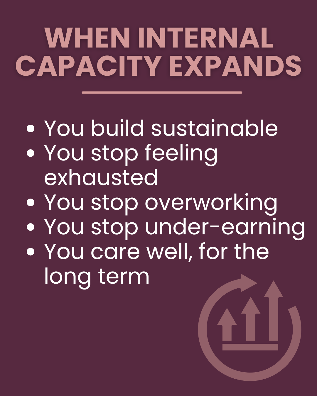 Expand your capacity so you can stop feeling exhausted, stop overworking and stop under-earning, without compromising the care you give your clients.